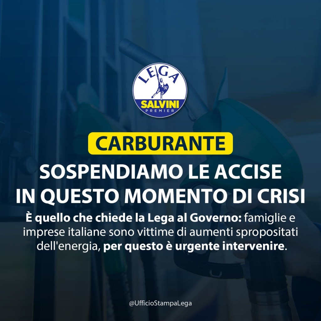 Primo firmatario Salvini. ‘Sia calendarizzata appena possibile’ Una mozione della Lega, primo firmatario il senatore Matteo Salvini, e’ stata presentata al Senato sul caro energia e in particolare per chiedere al govern un impegno a “intervenire con una misura di urgenza per sospendere temporaneamente l’esigibilita’ dell’accisa sul carburante fino al ripristino del livello dei prezzi medi