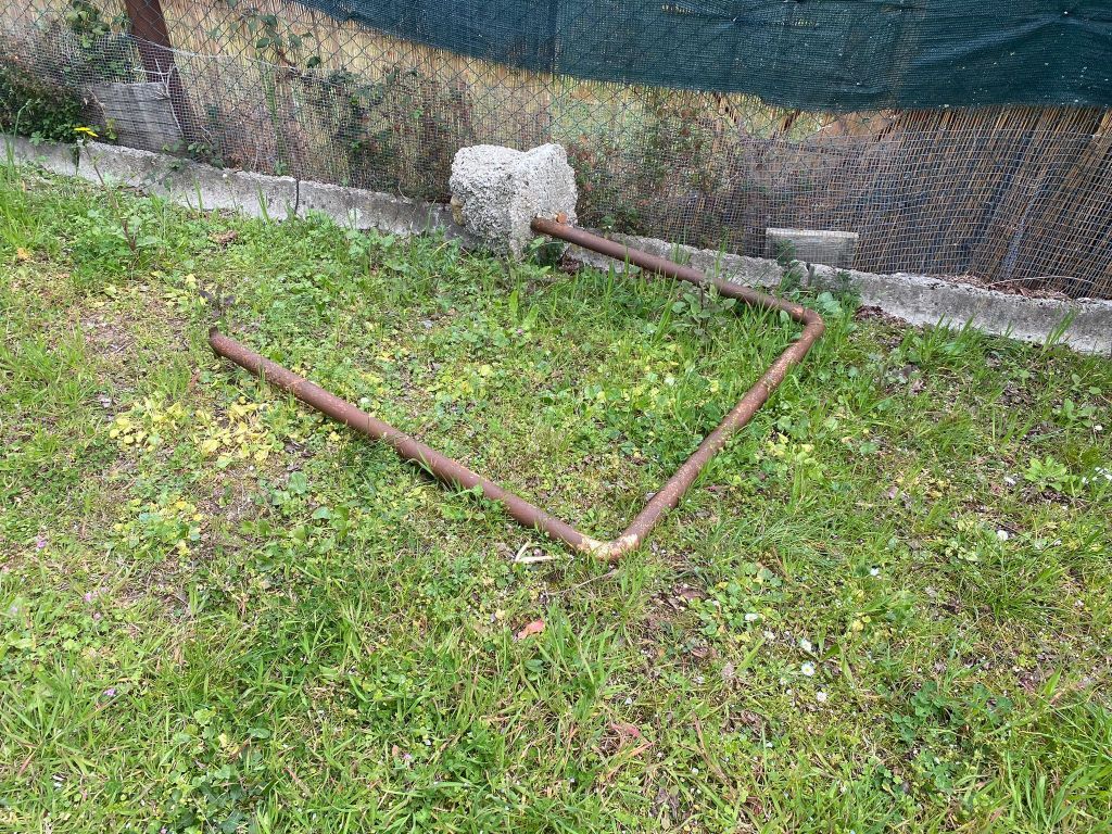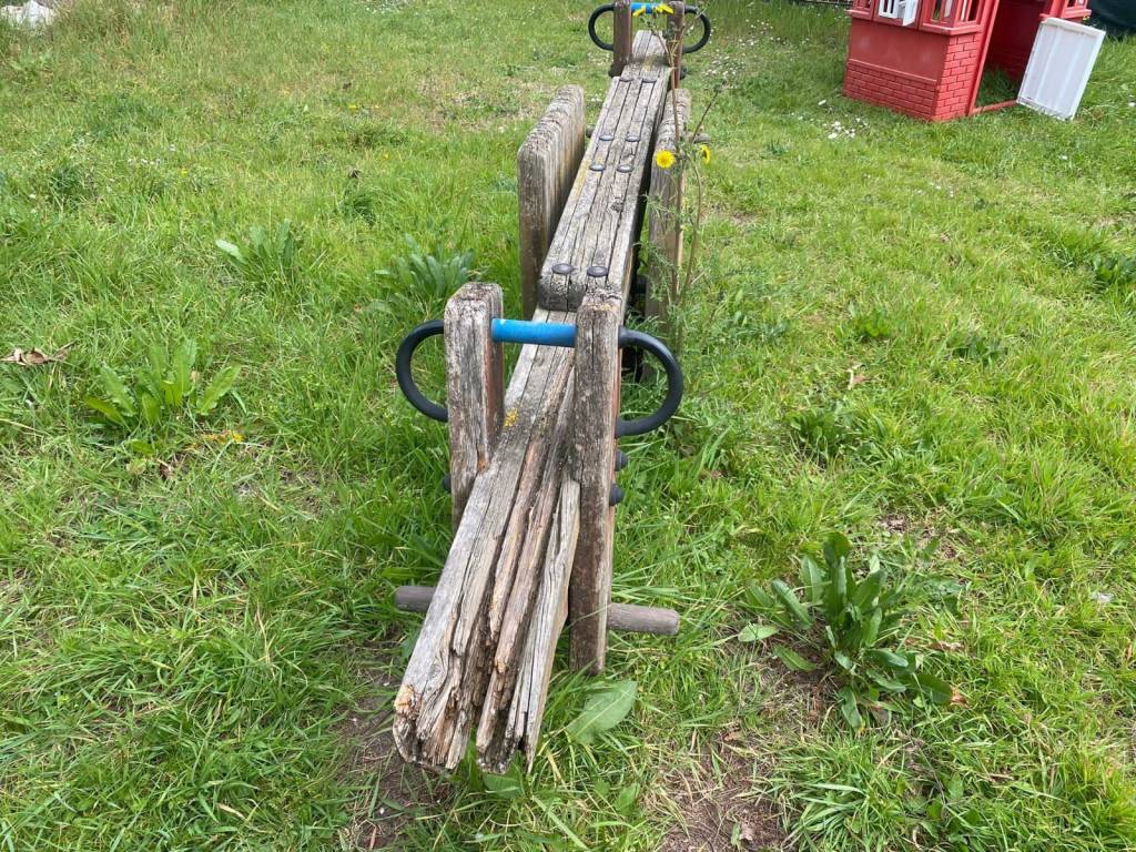 🔸️Abbandonata poco distante, l’altalena basculante che lascia ben in vista un grande bullone e ferri di sostegno arruginiti.