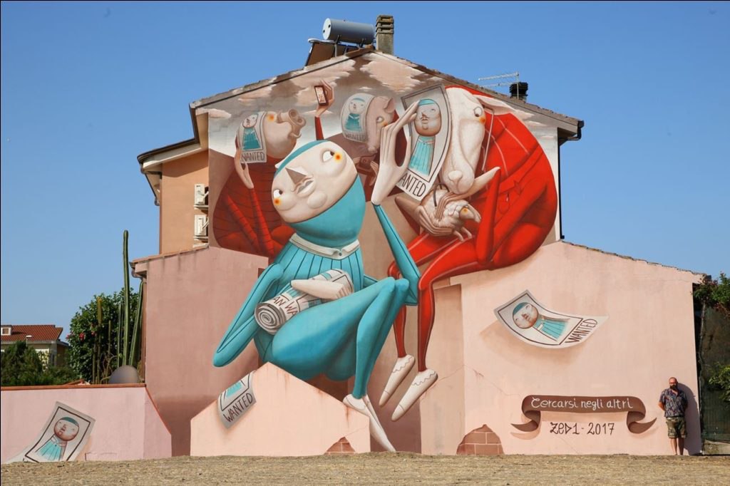 Ed è stimolante il dibattito che ne viene fuori su certi Murales che irrompono monumentali su enormi pareti di condominio. L’opinione pubblica si divide su opportunità di certi soggetti e sull’ammirazione di altri.