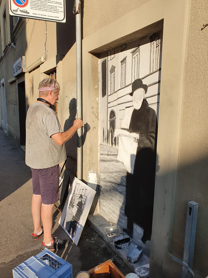 Ma la storia pittorica livornese continua senza freni… è di stamattina un’opera inaugurata stamattina, “Fa ballare il mondo. Solo con il colore dentro”, in Via dei Pensieri… è dedicato a Riccardo Cioni… scomparso due anni fa.