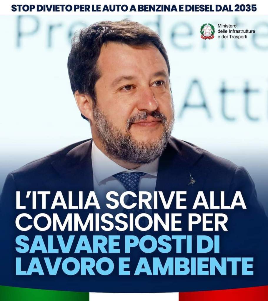 Stop al divieto di auto a benzina e diesel dal 2035: insieme al Ministro dell’Ambiente e al Ministro delle Imprese e del Made in Italy, questa mattina ho scritto alla Commissione europea per ricordare, da una parte, il pieno impegno dell’Italia per la riduzione delle emissioni dei veicoli leggeri ma dall’altra, la necessità di salvaguardare il settore dell’automotive, inserendo anche il biocarburante tra i combustibili considerati “neutri”, per garantire una corretta transizione ambientale nel rispetto della sostenibilità economica, sociale e industriale.