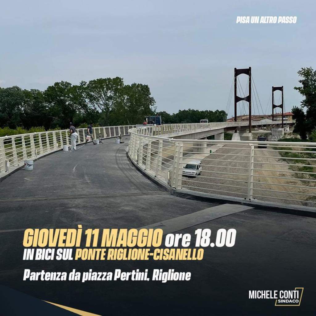 Vi aspetto a Riglione in bicicletta per una pedalata insieme sul nuovo ponte ciclopedonale. Portate anche i vostri bambini, sarà una festa. Aspettavamo questo momento da tanto tempo e finalmente ci siamo!