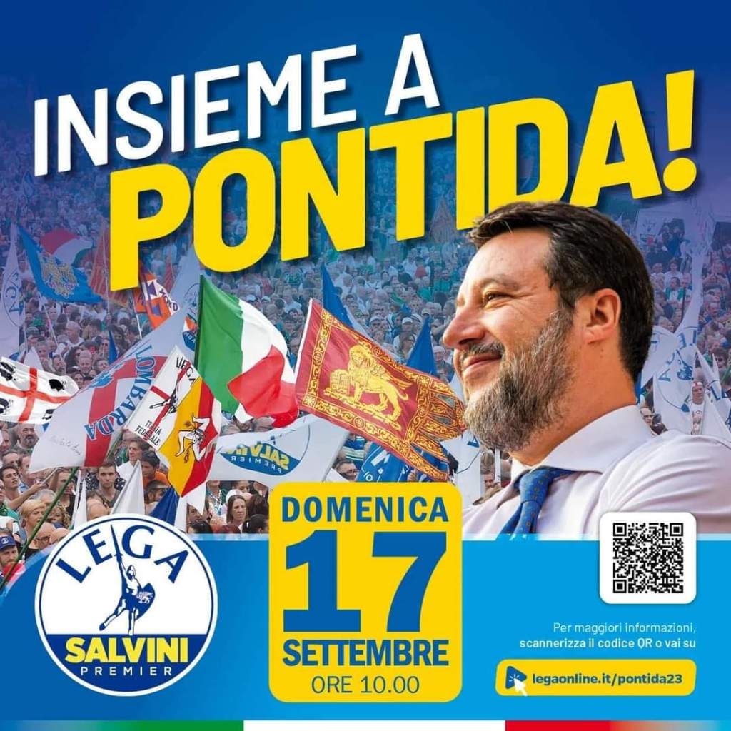 Insieme a PONTIDA! domenica 17 settembre 2023 Postato il agosto 29, 2023 di Laura Petreccia Alle ore 10 a Pontida! Condividi: Condividi su Telegram (Si apre in una nuova finestra) Telegram Condividi su WhatsApp (Si apre in una nuova finestra) WhatsApp Condividi su Facebook (Si apre in una nuova finestra) Facebook Mi piace Caricamento... Correlati