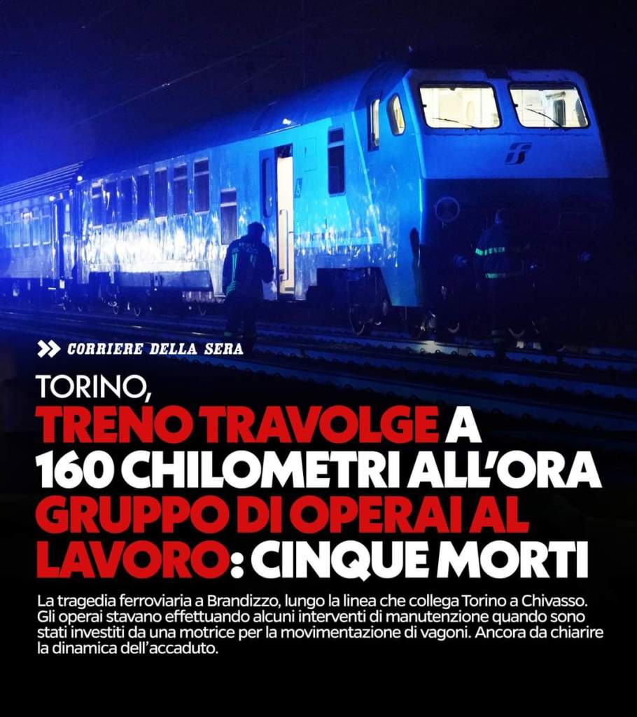 Terribile tragedia sulla linea ferroviaria Torino-Milano: nella notte un treno ha investito un gruppo di operai nei pressi di Chivasso.