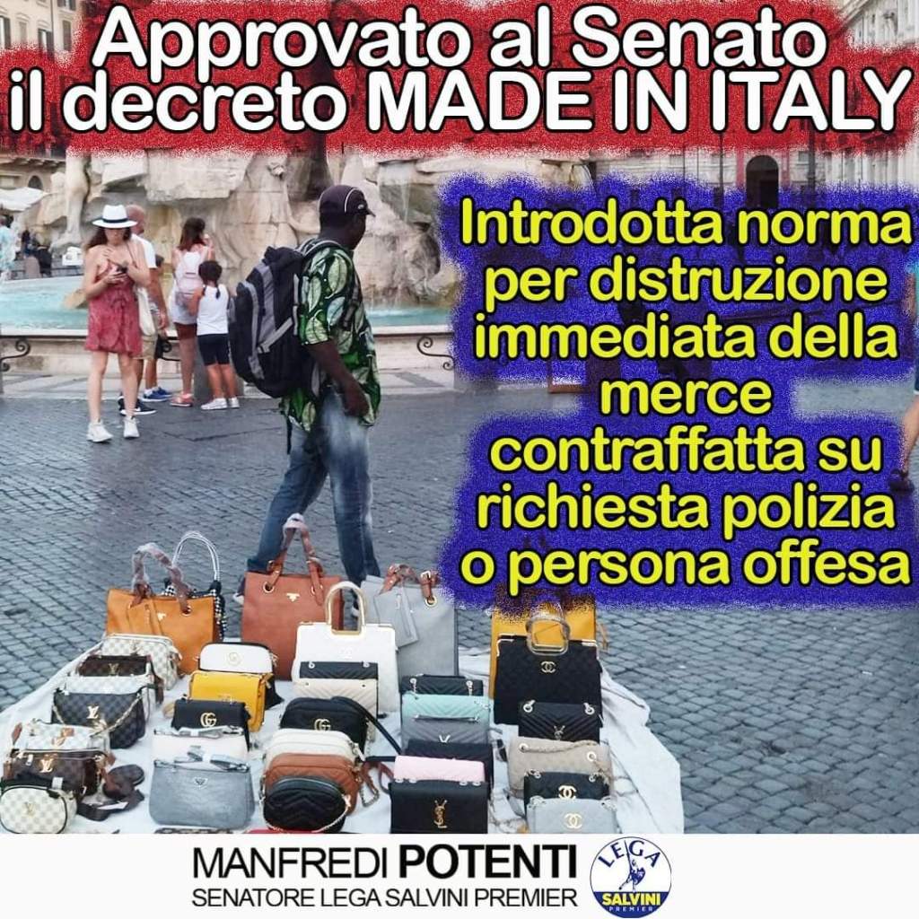 🔵CON LA LEGGE SUL “MADE IN ITALY” LA MAGGIORANZA DI CENTRODESTRA COLPIRĂ€FINALMENTE CON INCISIVITĂ€ FENOMENI DI ABUSIVISMO E IL MERCATO ILLEGALE CHE ATTACCA I NOSTRI MARCHI NAZIONALI !!!